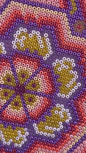 Jeder dieser Kreise bzw Tondos Es kodiert zeremonielle und spirituelle Erzählungen, verbunden mit Figuren- und Farbmustern, die die Weltanschauung der Wixárika charakterisieren: Tiere, Vegetation, die Sterne und die Götter, die uns die Wahrheiten des Kosmos verkünden.